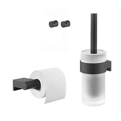 Tiger Colar Ensemble d'accessoires de toilettes - Porte-brosse WC - Porte-rouleau papier toilette sans rabat - Crochet porte-serviette - Noir