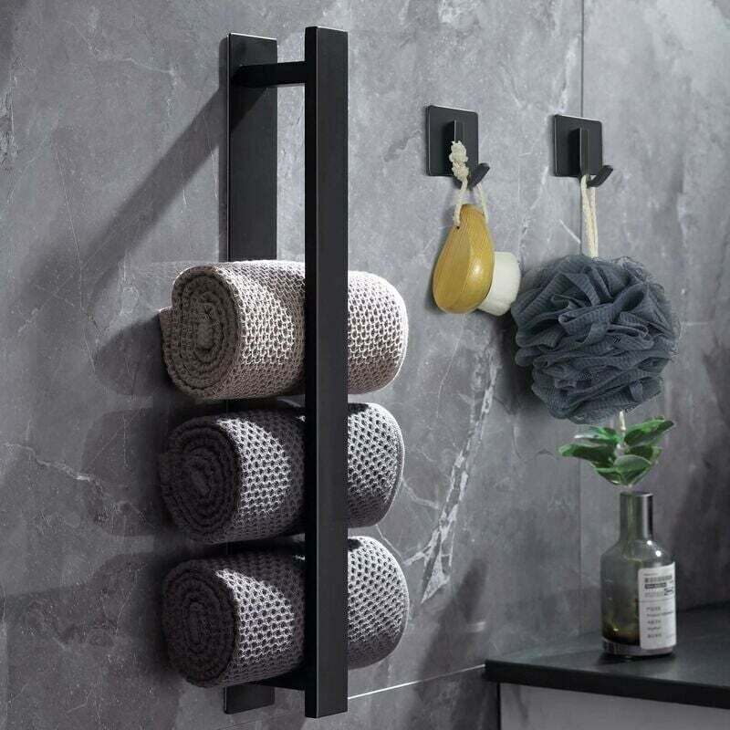Porte serviette sans perçage, porte serviette noir, porte serviette salle de bain, porte serviette invité, porte serviette mural inox mat, porte