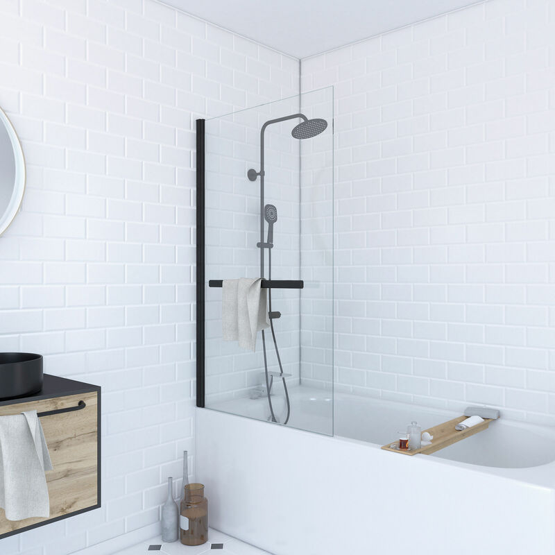 Pare baignoire pivotant et relevable avec porte serviette - Noir mat - 80 x 140 cm - VESLIRA
