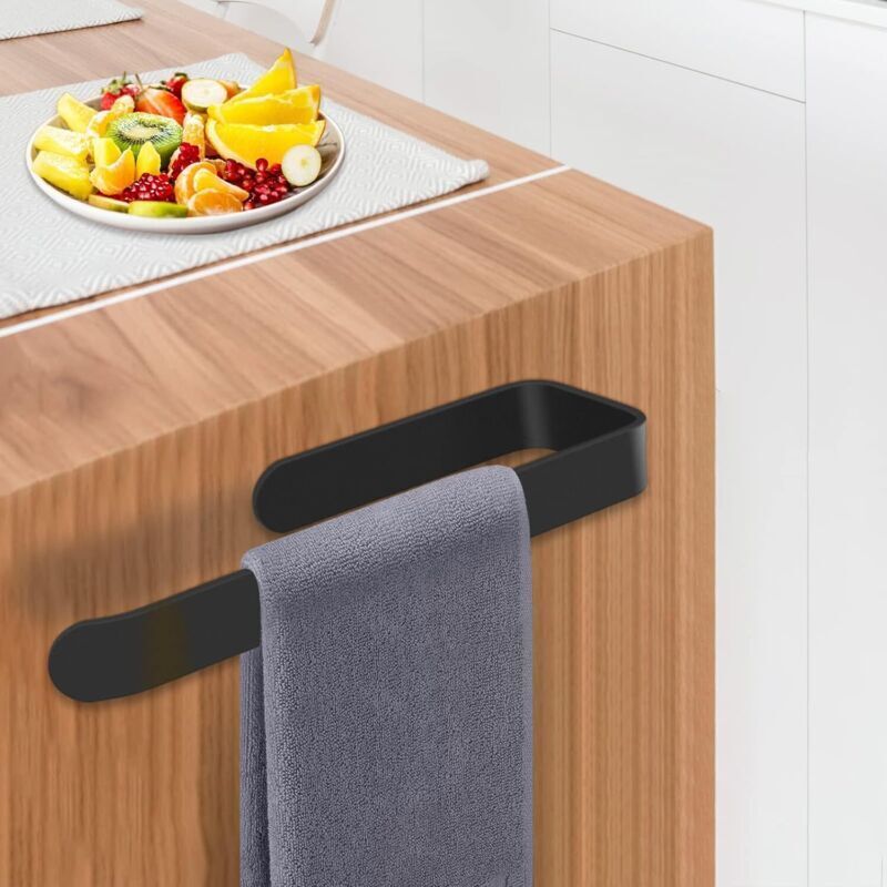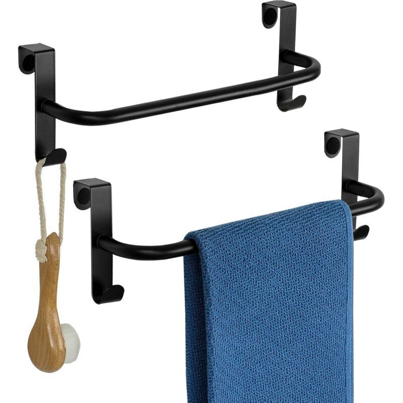 2 Pièces Porte Torchon Cuisine à Suspendre, 29CM Porte Serviette Noir avec 2 Crochets sans Percage, Accroche Torchon Cuisine en Métal pour Salle de