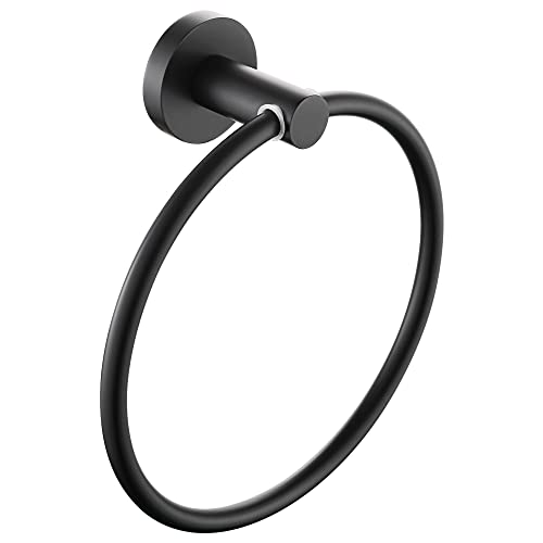 APLusee Anneau Porte-Serviette Mural Noir Mat, Porte-Serviettes pour Salle de Bain, Crochet Mural Rond en Acier Inoxydable Massif