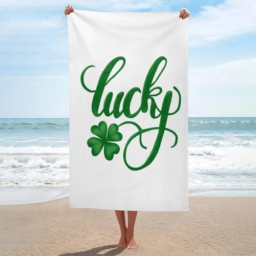 Serviette de plage en microfibre anti-sable, motif trèfle porte-bonheur en vert, grande serviette de douche multi-usages absorbante pour salle de bain et piscine, 130 x 80 cm