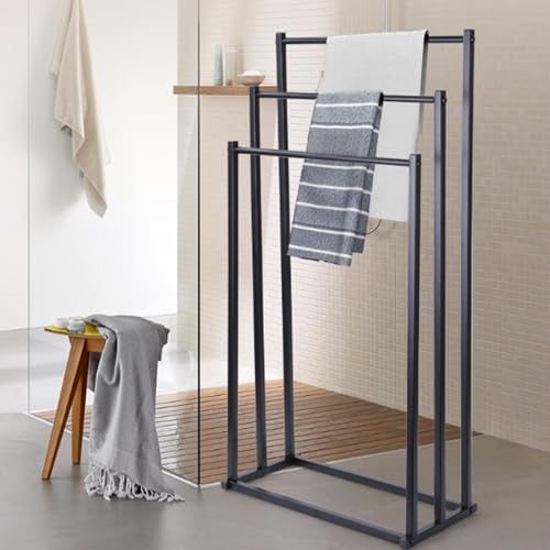 Porte Serviette Salle de Bain sur Pied 4 Barres, Support Seche Serviette Noir, Porte Serviette avec Tablette Métal Rangement Serviette Organisateur pour Cuisine Buanderie Salon Côté Piscine (Black)