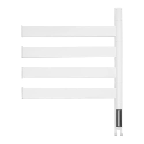 Wulimasun Seche Serviette Electrique,90W Porte Serviettes Chauffant 45-65°C avec 4 Barres en Acier Inoxydable 48 * 64cm Conception Pivotante à 180°,pour de Bains, Aux Cuisines, Aux Balcons (Blanc)