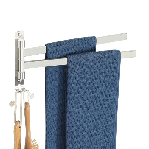 Mooche Porte-Serviettes avec 4 Barres 180° Rotatives en Acier Inoxydable, Antirouille et Pratique, Porte Serviette Murale Sèche-Serviettes pour Salle de Bain/Cuisine Lavabo, Argent