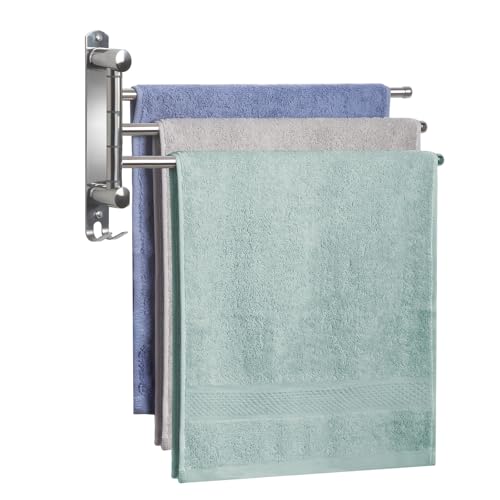 JSVER Porte-Serviettes avec 3 Barres 180°Rotatives en Acier Inoxydable SUS304 Porte Serviette Murale Sèche-Serviettes pour Salle de Bain Cuisine Lavabo-Argent