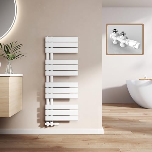 EMKE Seche Serviette Salle de Bain, Raccord Latéral, 1041x400 mm, Blanc, 456W – Radiateur Porte-Serviettes à Eau Chaude, Chauffe Serviette Mural pour Salle de Bain(y Compris vannes)