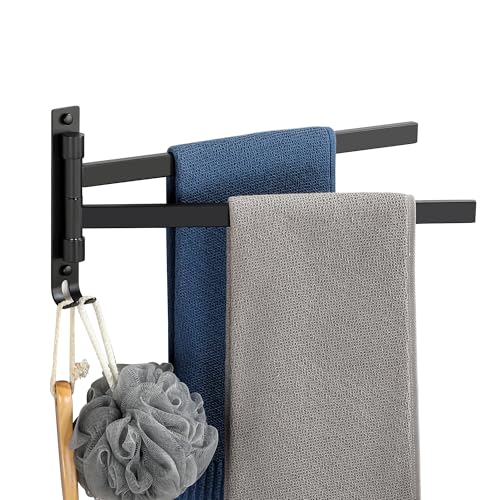 SAYAYO Porte Serviette avec 2 Barres 180° Rotatives, Support Sèche-Serviettes Mural en Acier Inoxydable SUS304, Idéal pour Salle de Bain et Cuisine, Noir Mat Montage par Vis, EGKN2520HD-2-B