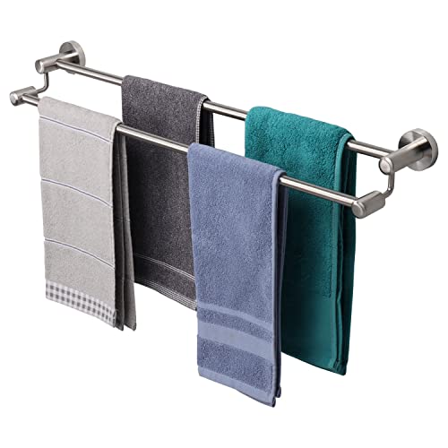 TocTen Double Sèche Serviette de Bain – Porte-Serviettes épais en Acier Inoxydable SUS304 pour Salle de Bain, Accessoires de Salle de Bain, Double Barre Porte-Serviettes Murale Robuste (brossé