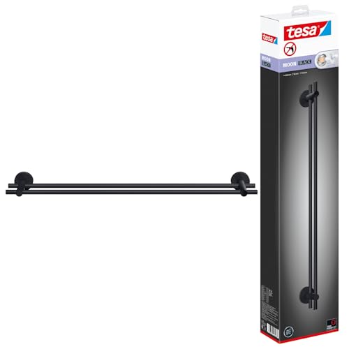 tesa Moon Black Porte Serviette Double, Noir Mat, adhésif, Technologie sans percer, 112 mm x 640 mm x 50 mm