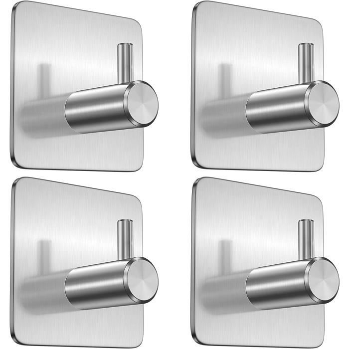 Crochet Adhesif Mural 4 PiècesCrochet Adhésif 3M Acier Inox Accroche Tableau sans Percer Porte Serviette pour Salle de Bains