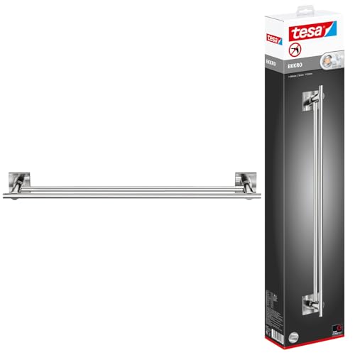 tesa EKKRO porte serviette double, acier inoxydable look, adhésif, technologie sans percer, 112 mm x 640 mm x 50 mm