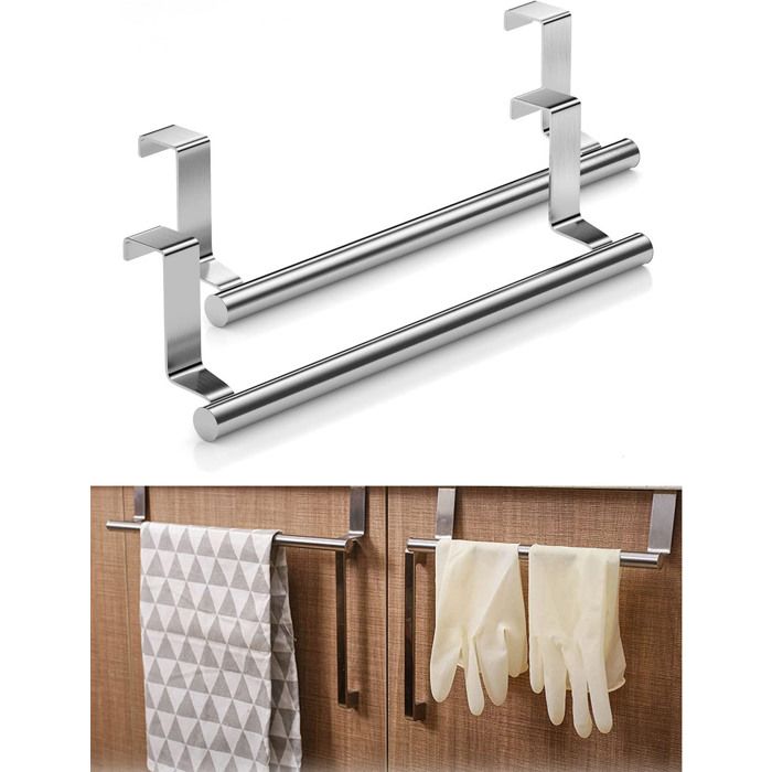 Lot de 2 porte torchon cuisine - porte serviette porte en inox - Sans Percer - pour cuisine et la salle de bain - 23*6cm - Argenté