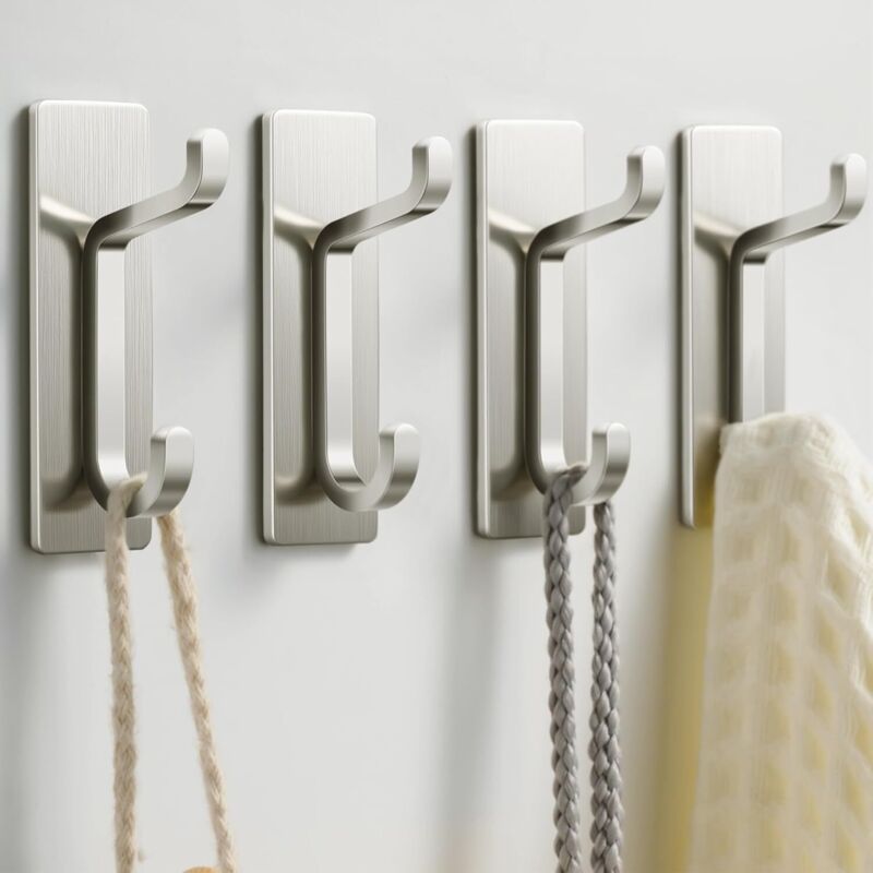 Rapanda - Crochets Auto-Adhésifs, 4PCS Crochet Double Porte Serviette Salle de Bain, Crochet Adhesif Mural, Attache Support Murale Sans Percer, pour