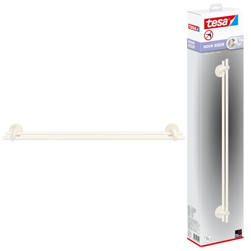 tesa Moon White Porte Serviette Double, Blanc Mat, adhésif, Technologie sans percer, 112 mm x 640 mm x 50 mm