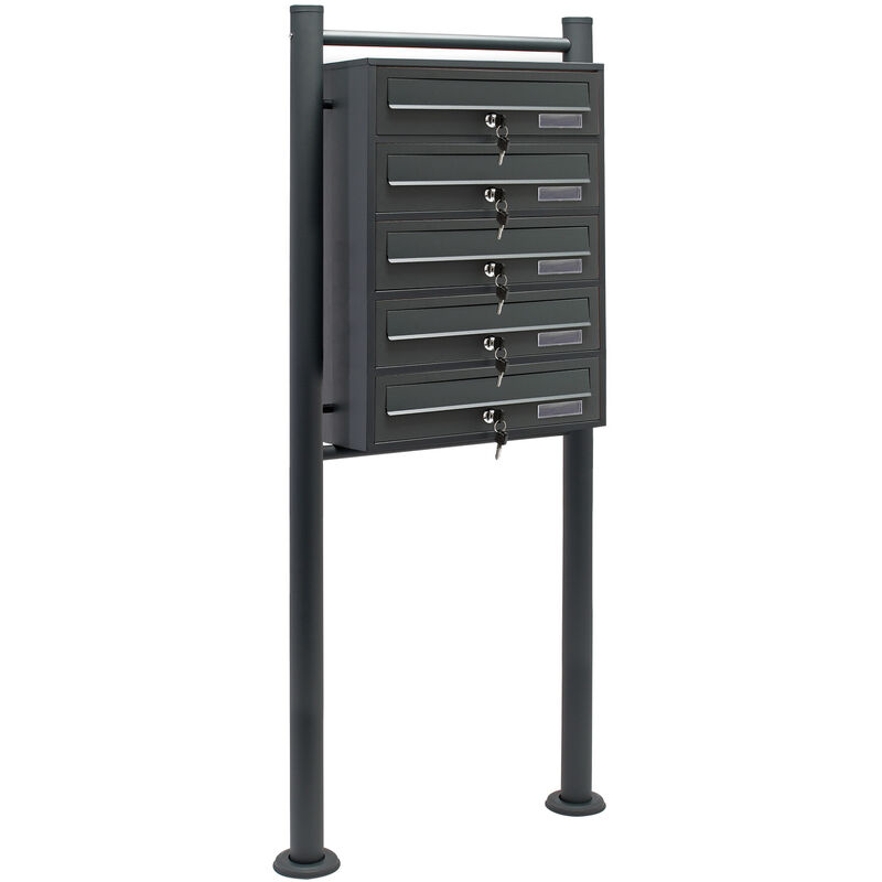 Wiltec - Boîte aux lettres sur pieds Gris anthracite 513 x 270 x 1500 mm, avec 5 Compartiments verrouillables et Porte-nom, Revêtement en poudre,