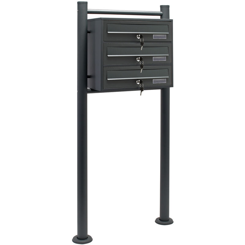 Wiltec - Boîte aux lettres sur pieds Gris anthracite 512 x 270 x 1150 mm, avec 3 Compartiments verrouillables et Porte-nom, Revêtement en poudre,