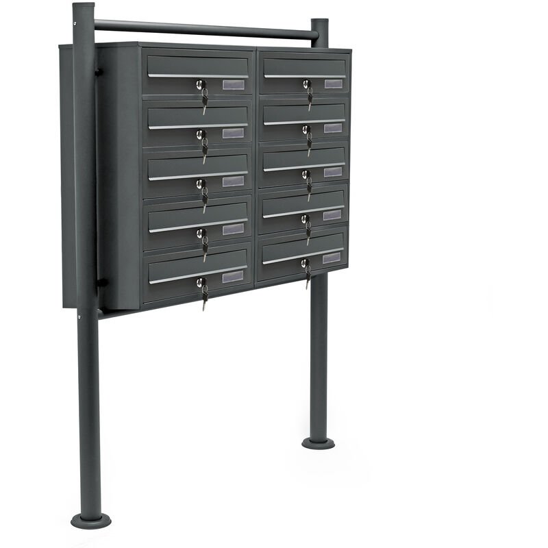 Wiltec Boîte aux lettres sur pieds Gris anthracite 945 x 270 x 1500 mm, avec 10 Compartiments verrouillables 2x5 et Porte-nom, Revêtement en poudre,