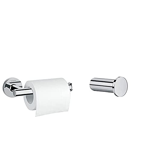 Hansgrohe Porte-Papier Toilette WC Logis Chrome 41726000 & Crochet Porte-Serviette Logis pour Salle de Bain Chrome 41711000