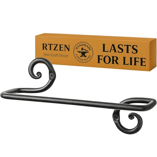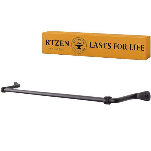 RTZEN Farmehouse Porte-Serviettes de Salle de Bain – Barre Porte-Serviettes en Fer forgé Noir Mat – Barre de Support Mural – Décoration d'intérieur en métal Fait à la Main (40,6 cm – Convient aux