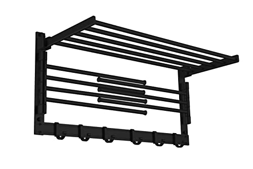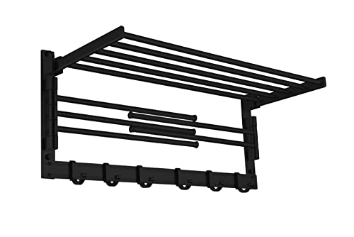 Görbach Porte-Serviettes Multifonctionnel en Aluminium Anti-Corrosion Résistant à la Rouille Barres Porte avec Crochet Porte Serviettes Mural pour Salle de Bain Cuisine Noir(7-60MS)