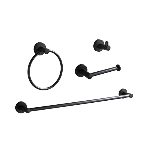 EMKE Lot de 4 Porte-Serviettes de Salle de Bain en Acier Inoxydable - Porte-Serviettes de Bain de 60 cm + 1 Porte-Papier Toilette + 1 Anneau Porte-Serviette en Papier + 1 Brosse WC - Noir
