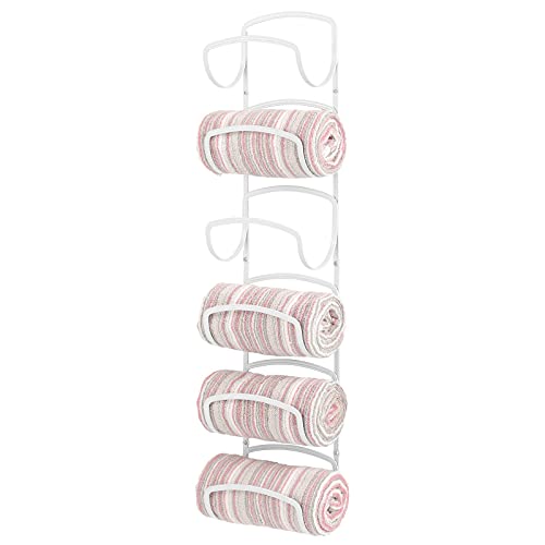 mDesign Étagère à Serviettes en métal – Porte-Serviettes pour Salle de Bain avec 6 Compartiments – Accessoires de Salle de Bain Pratiques pour Les Grandes et Petites Serviettes – Blanc