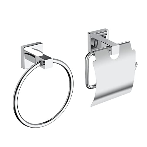 EMKE Lot de 2 Porte-Serviettes de Salle de Bain en Acier Inoxydable - Autocollant Mural - Accessoires de Salle de Bain - Anneau Porte-Serviettes et Porte-Papier Toilette avec décoration chromée