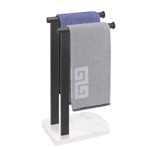 NearMoon Porte-serviettes avec base en marbre équilibrée, support en acier inoxydable SUS304 en forme de L, barre porte-serviettes autoportante pour salle de bain et cuisine (double tringle, noir mat)