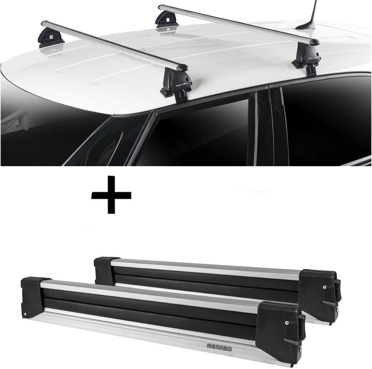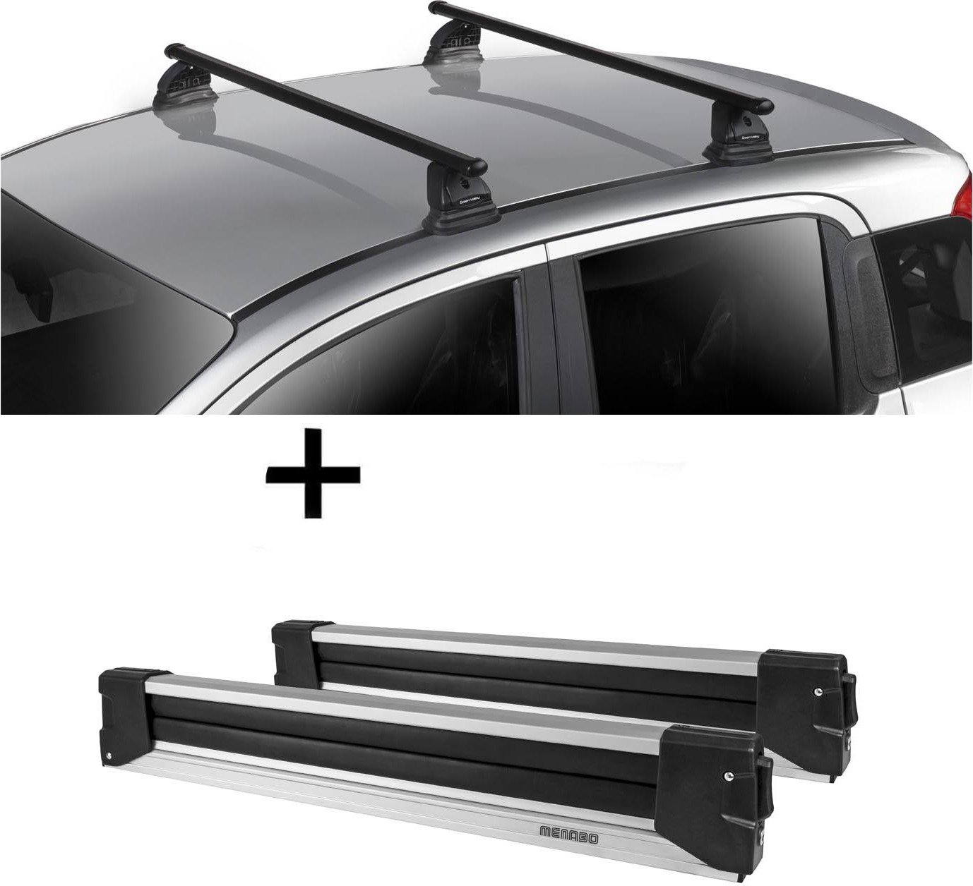Barres de toit Menabo Tema + porte-skis / porte-planches à neige / porte-skis Silve Ice télescopique) compatibles avec Kia Venga (pour monospace 5 portes) à partir de 2014