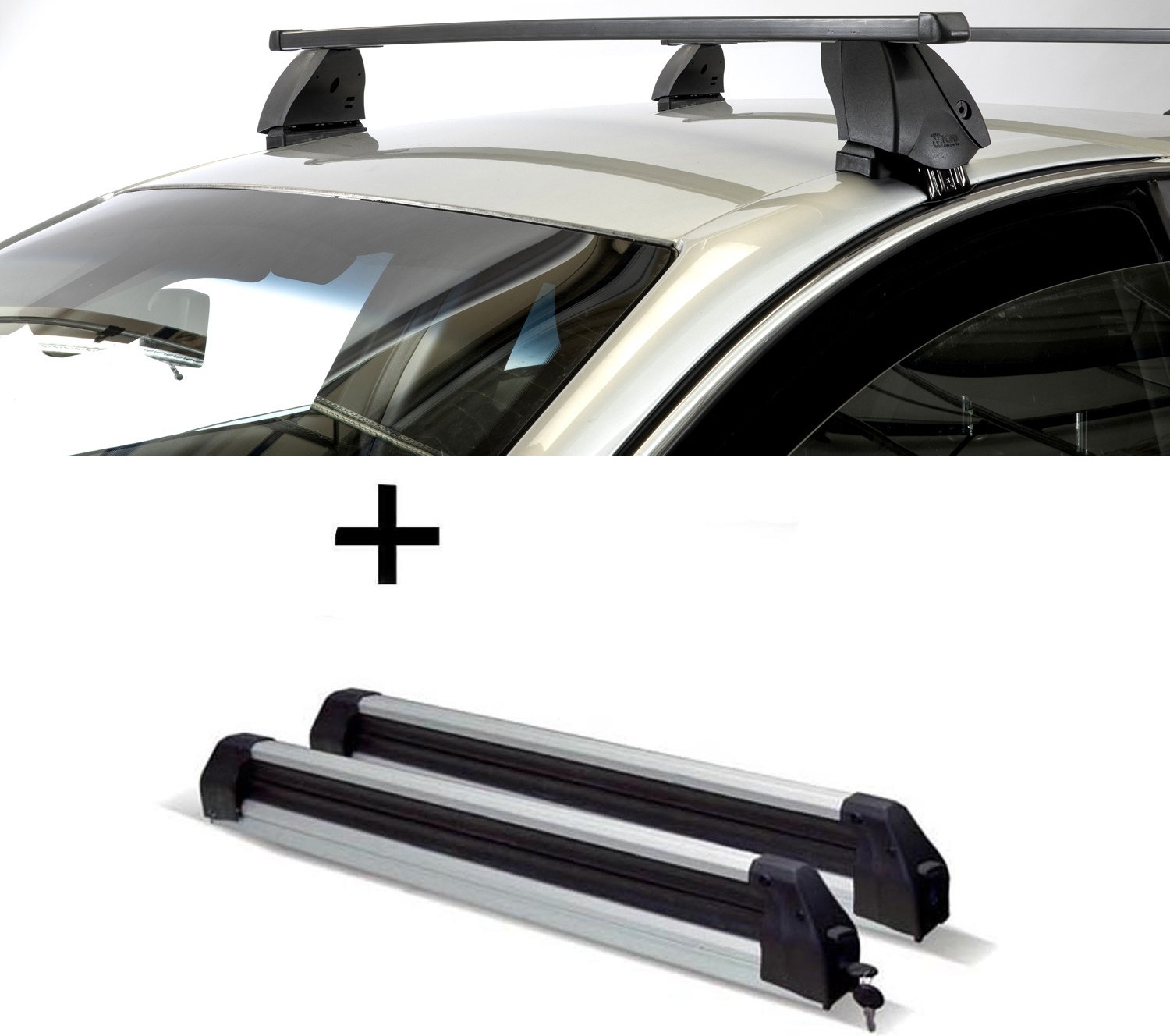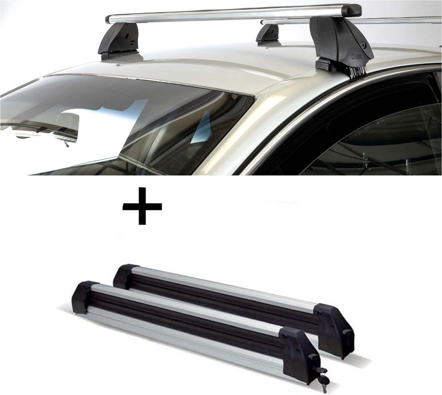 Porte-skis Silver Ice extensible + barres de toit K1 PRO aluminium compatibles avec Land Rover pour Range Rover 2 Sport (L494) (5 portes) à partir de 14 ans