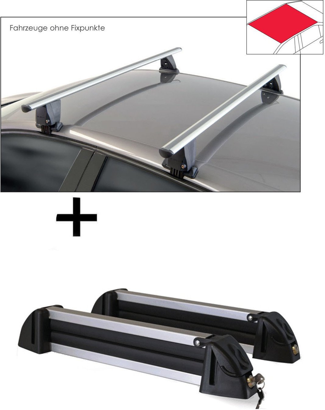 Porte-skis YELO pour 6 paires de skis + barres de toit VDP EVO ALU compatibles avec la Skoda Fabia (6Y) 5 portes 1999-2007