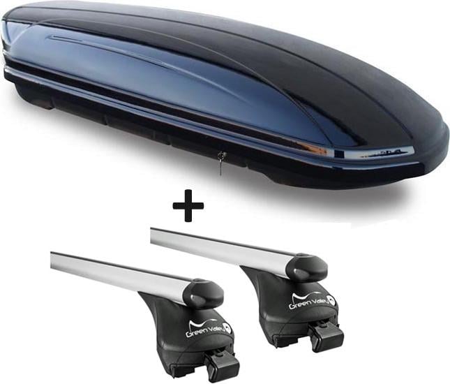Coffre à skis VDP noir brillant MAA 460G 460 litres verrouillable + barres de toit en aluminium Compatible avec le porte-bagages Quick Compatible avec les barres de toit en aluminium pour Audi A6 break 2005 à 2011