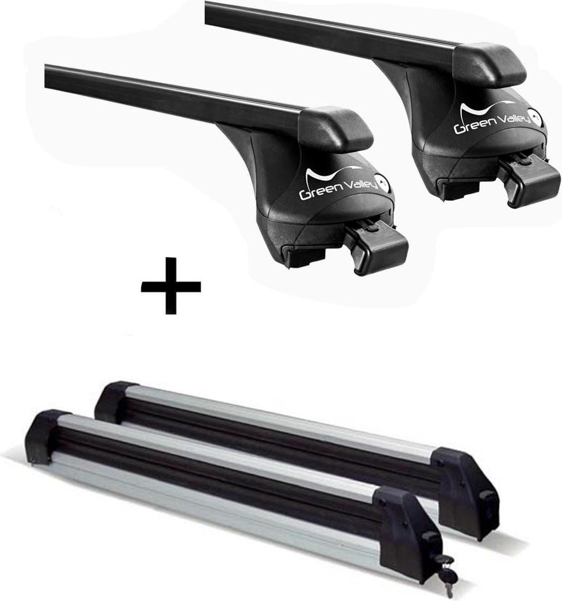 Porte-skis extensible + barres de toit K1 PRO en aluminium compatibles avec Land Rover pour Range Rover Evoque (L538) (4 portes) à partir de 2011