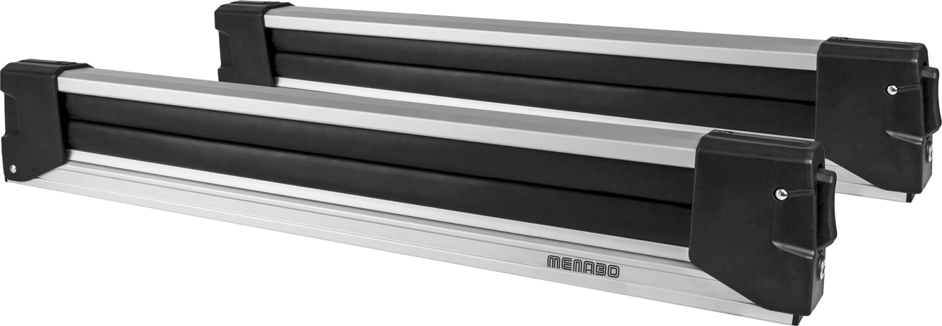 Barres de toit Menabo Tema acier + porte-skis / porte-planches à neige / porte-skis alu 4 paires de skis compatibles avec Subaru Pleo (pour monospace 5 portes) à partir de 2007