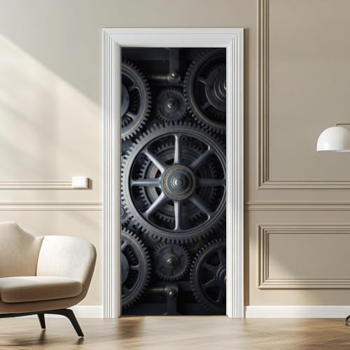 Sticker Porte Trompe-l'oeil Équipement Effect 3D Poster Porte Auto-Adhésif Style Industriel Rétro Autocollant 90x200 cm Imperméable et Amovible pour Salon, Chambre et Cuisine Mural Décoration m.1739