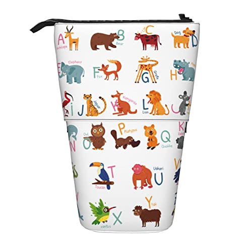 Lsjuee Trousse à Crayons télescopique Alphabet Animal Debout Pochette à Crayons Papeterie Organisateur Sac, Porte-Stylo Portable pour Bureau école Adolescents Sacs Filles