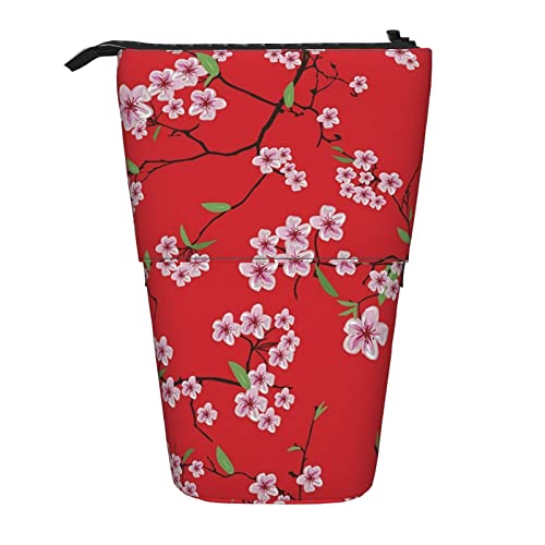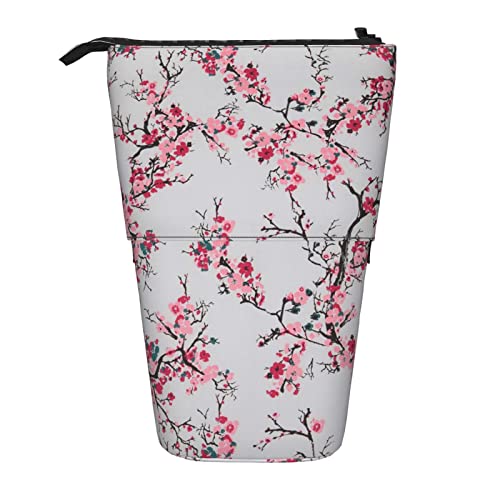 Lsjuee Trousse à Crayons télescopique Fleur de Prunier Pochette à Crayons Debout Sac Organisateur de Papeterie, Porte-Stylo Portable pour Bureau école Adolescents Sacs Filles