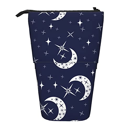 Lsjuee Trousse à Crayons télescopique Lune et étoile Pochette à Crayons Debout Sac Organisateur de Papeterie, Porte-Stylo Portable pour Bureau école Adolescents Sacs Filles