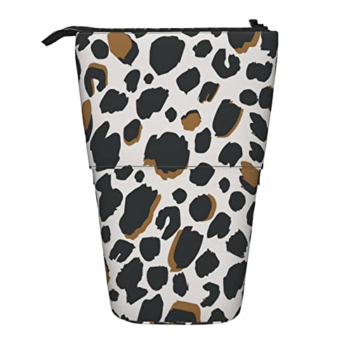 Lsjuee Trousse à Crayons télescopique imprimé léopard Pochette à Crayons Debout Sac Organisateur de Papeterie, Porte-Stylo Portable pour Bureau école Adolescents Sacs Filles