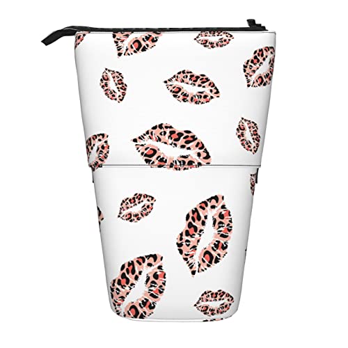 Lsjuee Trousse à Crayons télescopique Lip Kiss Debout Pochette à Crayons Papeterie Sac Organisateur, Porte-Stylo Portable pour Bureau école Adolescents Sacs Filles
