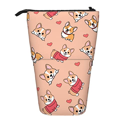 Lsjuee Trousse à Crayons télescopique Corgi Debout Trousse à Crayons Papeterie Organisateur Sac, Porte-Stylo Portable pour Bureau école Adolescents Sacs Filles
