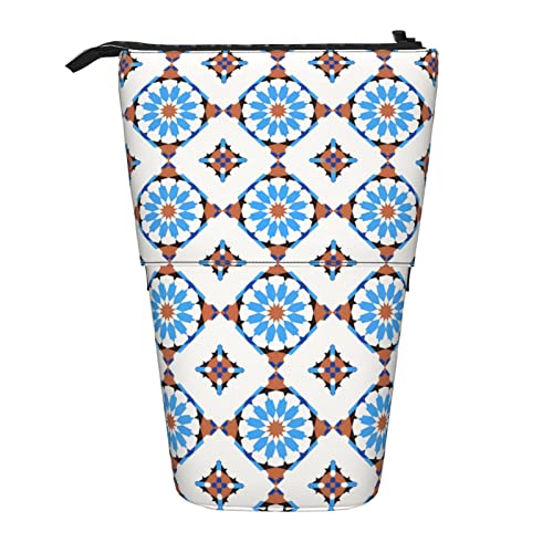 Lsjuee Trousse à Crayons télescopique Marocaine Bleu Marine Pochette à Crayons Debout Sac Organisateur de Papeterie, Porte-Stylo Portable pour Bureau école Adolescents Sacs Filles