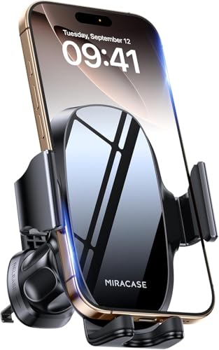 Miracase Support Téléphone Voiture [2025 Gravité Conception] Porte Telephone Voiture avec Double Accroche en acier pour Grille Aération,Compatible avec iPhone 16 Pro Max Plus Samsung & All Smartphones
