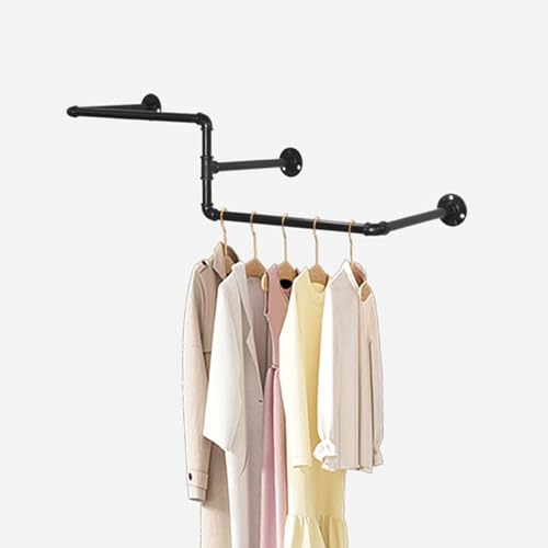 UNHO Penderie Murale Vêtement Boutique, Portant à Vêtement Mural Industriel Solide Porte Manteau Mural Design Tringle Vêtement Murale Amovible - 109x35x31cm Noir