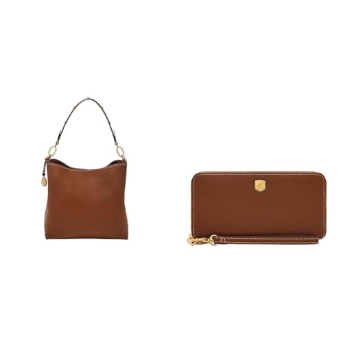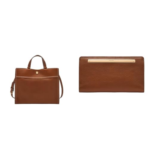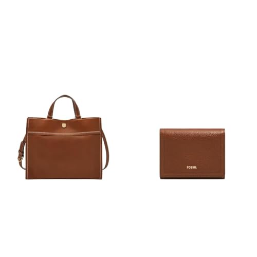 Fossil Femme Carmen Sac en cuir marron et portefeuille Logan, Coffret