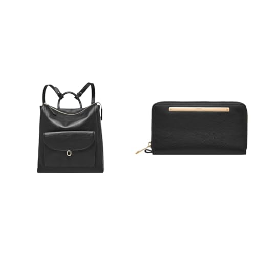 FOSSIL Femme Kinley Sac en cuir noir et portefeuille Liza, Coffret