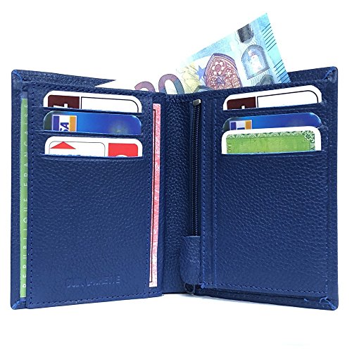 LOLUNA® Grand Portefeuille Classique en Cuir Vachette Souple 4 Volets Pratique pour Placer Carte Grise - permis - identité - Cartes - Billet - Monnaie - Idée Cadeau pour Homme et Femme - Bleu Marine