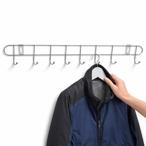 PARENCE. Grand Portemanteau Mural Chromé 8 Crochets – Patère Murale Métal – Porte Manteau Grande Taille pour Entrée, Salle de Bain ou Chambre