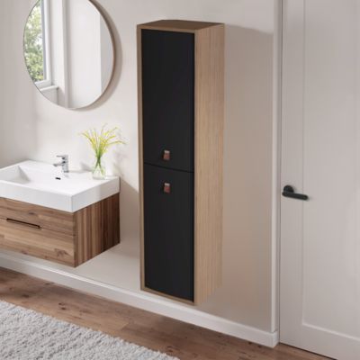 Colonne de salle de bains suspendue noir mat l.39 x H.160 x P.31 cm, 2 portes ouverture à gauche, Decotec Havana